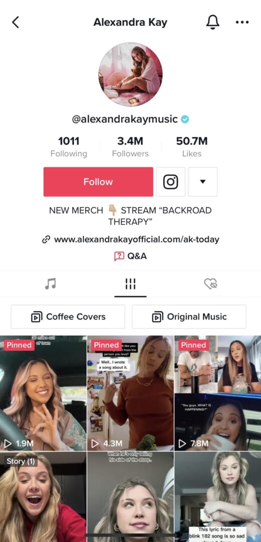 In quanto musicista su TikTok, puoi usufruire di un profilo artista unico e personalizzato. Questo profilo comprende una scheda aggiuntiva per consentire agli utenti di cliccare e scoprire altri brani. La musica contenuta in questa scheda è organizzata sotto forma di elenco utilizzando gli algoritmi di TikTok che consentono agli utenti di cliccare sui singoli brani per esplorare la tua pagina musicale personale.